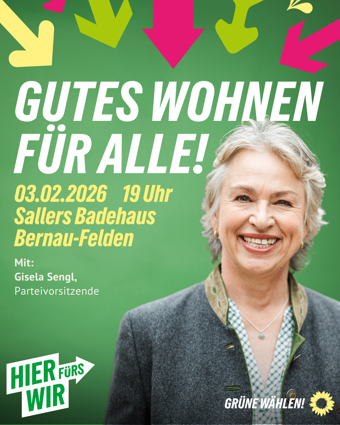 Die Immobilienpreise in Bernau, und damit auch die Mieten, liegen über dem bayerischen und deutschen Durchschnitt. Bezahlbaren Wohnraum zu finden, wird immer schwieriger. Welche Möglichkeiten gibt es, künftig gutes Wohnen für alle zu ermöglichen? Seid dabei, wenn wir mit unserer Landesvorsitzenden Gisela Sengl genau das diskutieren.